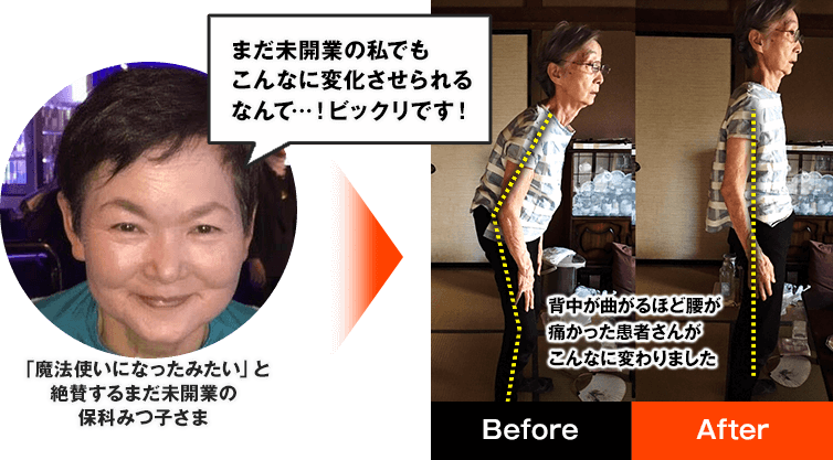 開業していない私でも、力を入れず難しい動作もなく、しかも短時間で驚きの変化です!