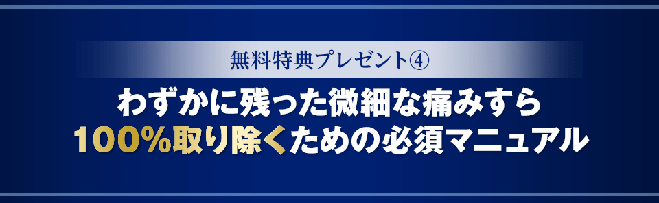 もし、今のあなたに1つでも取りきれない痛みがあるのであれば、ぜひ取り入れていただくことをオススメします。あなたの取りきれない痛みをゼロにするためには、これ以上ない究極の根治療法です。