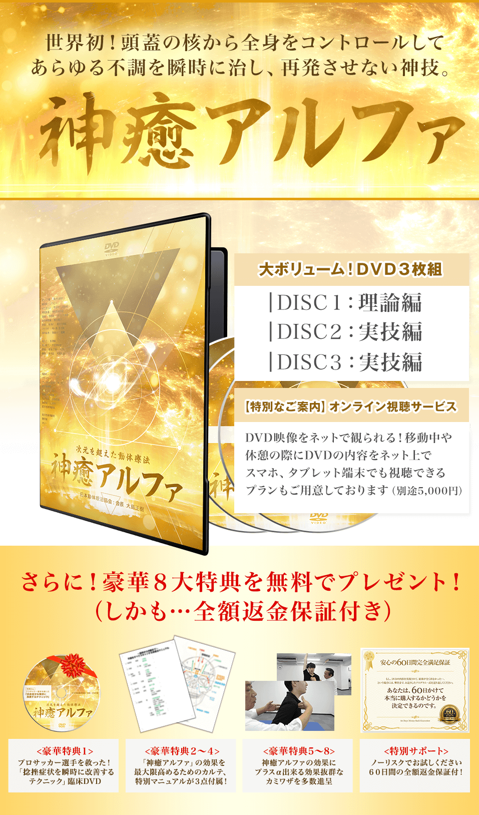 | 頭蓋の内側から全身の不調を瞬時に治し、再発させない神技 「~次元を超えた動体療法~神癒アルファ」DVD |